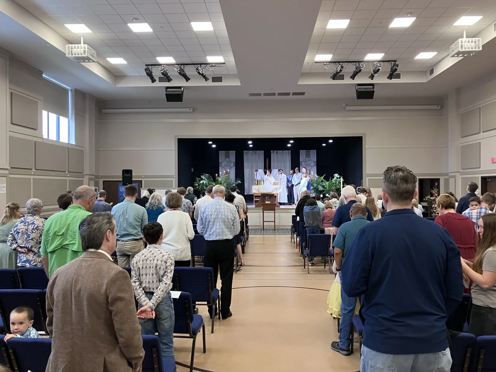 We gather in the Woehler Family Center at St. Thomas Episcopal Church who have graciously allowed us to use their family life center.